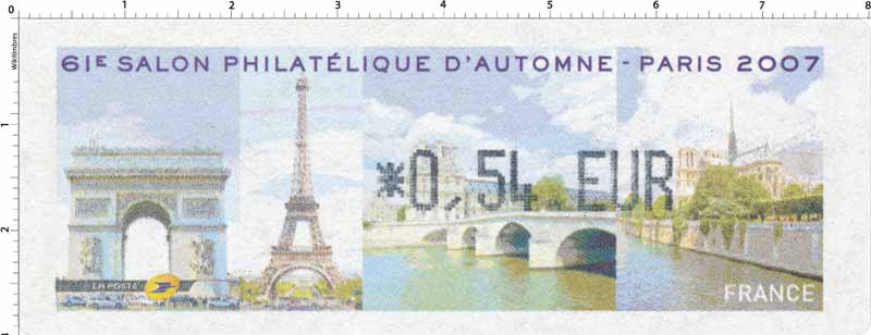 | Description | 61e Salon philatélique d'automne de PARIS - 08 au 11 novembre 2007 |