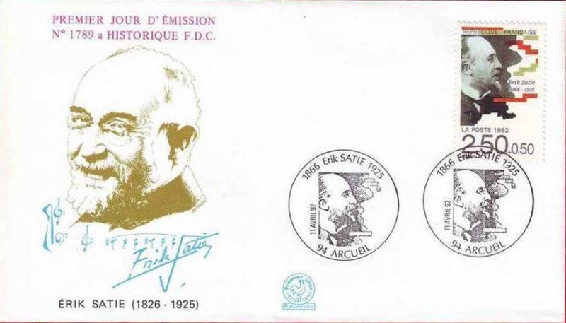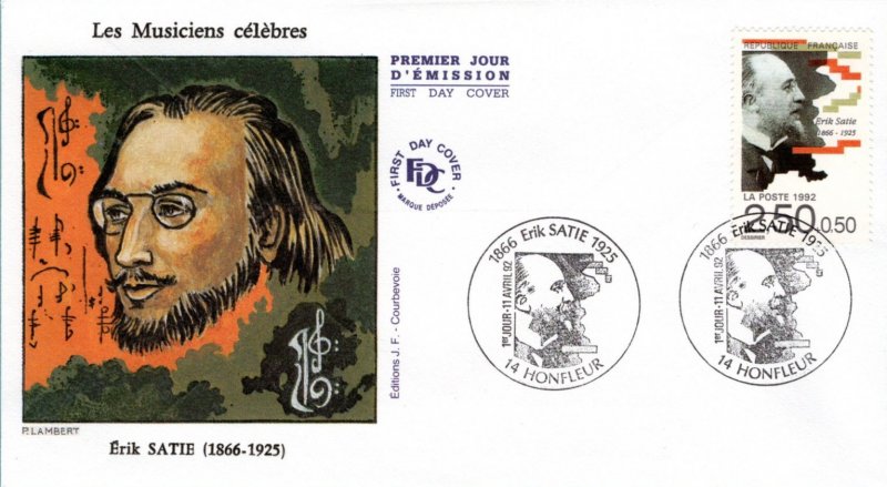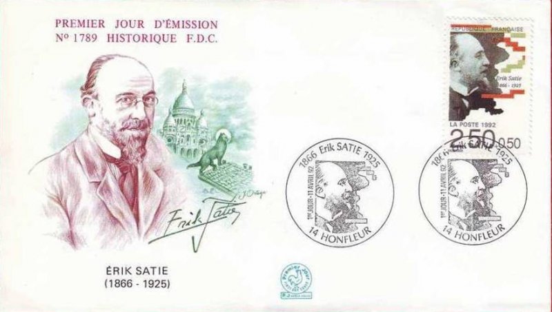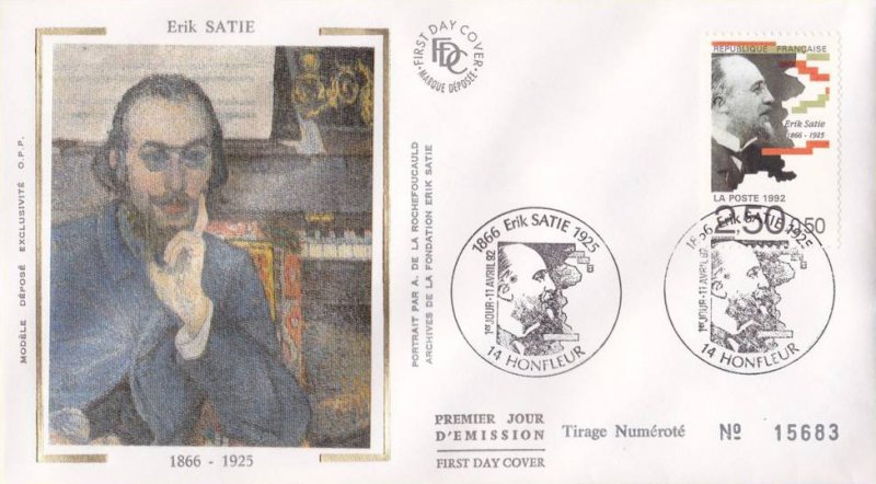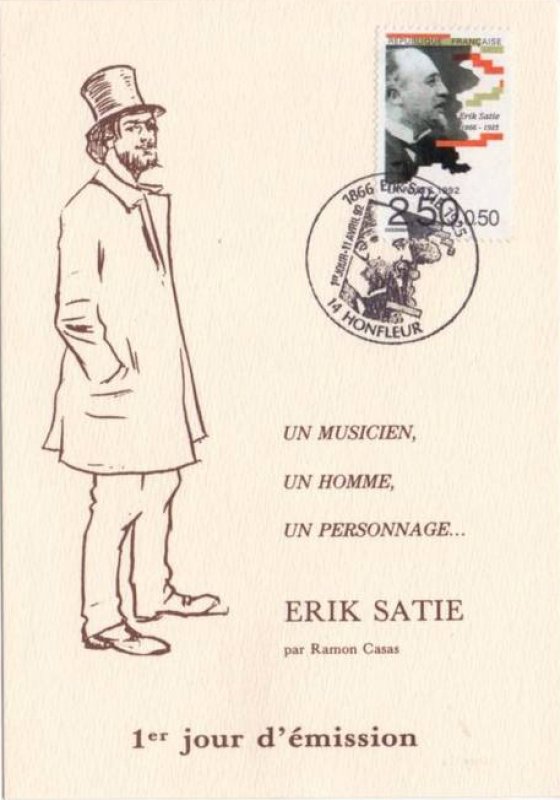 | Description | Erik Satie (1866-1925), compositeur et pianiste, né à Honfleur (provenant d'une feuille de 50 TP) |