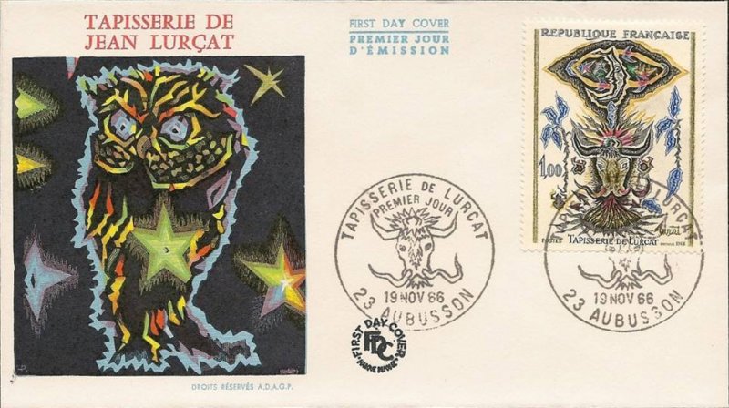 | Commentaire | Tu savais que Jean Lurçat, ce peintre au nom qui claque comme un coup de ciseaux dans un atelier, a failli devenir médecin ? Ouais, en 1911, il commence des études de médecine pour faire plaisir à ses parents. Spoiler : ça dure pas. Il bifurque vite vers l’art, entre à l’École des Beaux-Arts de Nancy, puis débarque à Paris. Là, il bosse avec des graveurs, flirte avec la poésie et la peinture murale, et s’engage même volontairement dans la Première Guerre mondiale, alors qu’il est pacifiste et dispensé. Paradoxe, non ? Après la guerre, il peint, voyage (Italie, Espagne, Sahara… excusez du peu), mais ce qui le happe vraiment, c’est… la tapisserie. Pas celle qu’on imagine, poussiéreuse et vieillotte. Non. Lui, il veut la réinventer. En 1937, en pleine débâcle du métier (les ateliers ferment à tour de bras), il s’associe à François Tabard à Aubusson. Et là, il sort un coup de génie : réduire les couleurs utilisées pour revenir à des techniques médiévales plus directes. Résultat ? Moins de 40 tons (contre… 3 000 auparavant !). On parle de "tons comptés", de "cartons chiffrés", bref, une vraie petite révolution. Petit aparté : sa toute première tapisserie, il la fait broder par sa propre mère pendant une permission de guerre. Si ça c’est pas touchant... Et pendant l’Occupation, il planque dans le Lot, résiste, voit son atelier cramé par les nazis. Rien que ça. Après-guerre, il s’installe dans un château et pond des œuvres puissantes, mystiques, parfois presque surréalistes – comme Le Chant du Monde, une suite monumentale. Ah, et il a même bossé pour le ballet américain ou illustré La Fontaine. Ce communiqué ? Il célèbre tout ça avec un timbre sorti en 1966, quelques mois après sa mort. Comme un clin d’œil miniaturisé à un homme qui, sans faire de bruit, a carrément redonné vie à un art qu’on croyait perdu. WikiTimbres |