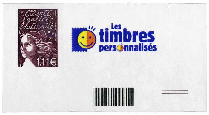 | Commentaire | (Légende RF au lieu de LA POSTE). Ce timbre est une erreur de couleur, c'est en fait la couleur du 1,90 euro. Une toute petite quantité a fait l'objet d'un tirage personnel, tandis que la version avec le logo de la Poste a continué à être imprimé normalement. |