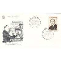 | Commentaire | Quand on évoque René Coty, il y a comme une brise légère qui traverse la mémoire collective — un homme simple, droit, un peu effacé, mais fondamental. En avril 1964, la Poste rend hommage à cet ancien Président, disparu deux ans plus tôt au Havre, sa ville natale. Né en 1882 dans la verte Normandie, Coty fait d’abord son chemin comme avocat courageux : en 1905, il ose défendre des cheminots en grève (pas vraiment populaire à l’époque !). Plus tard, il essaiera, en vain, de sauver Jules Durand, ouvrier syndicaliste condamné à tort — une histoire digne d’un polar triste. Puis vient la guerre : René Coty, exempté, décide pourtant de s’engager comme simple soldat. Quatre ans dans la boue, aux côtés de la fameuse "Division de fer" du général Mangin. Respect. Après 1918, il plonge à fond dans la politique : conseiller général, député, sénateur... mais toujours avec cette façon de faire tranquille, sans tape-à-l’œil. Pendant l’Occupation, il refuse net de collaborer avec Vichy — une droiture pas si courante. Puis, sous la IVe République, Coty grimpe discrètement jusqu’à la présidence en 1953. Ce n'était pas l’homme des grands discours, mais plutôt celui des gestes simples : pendant la crise de 1958, c’est lui qui appelle de Gaulle à la rescousse pour éviter la chute de la France. On dit qu’avec son épouse, Germaine, ils formaient un couple attendrissant, jamais écrasé par les ors de la République. Eux, c'était l'élégance sans effort, un peu à l’ancienne, un peu fuera de moda. Aujourd'hui, à l’heure où les figures politiques ressemblent souvent à des stars sous les projecteurs, repenser à Coty, c’est respirer un petit parfum d’humilité salutaire. WikiTimbres |