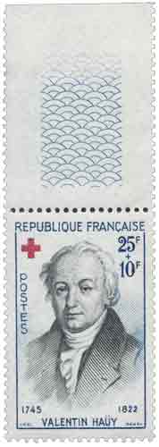 | Description | Au profit de la Croix-Rouge française. Valentin Haüy (1745-1822), pionnier de la lecture pour les aveugles, né à Saint-Just-en-Chaussée (provenant d'une feuille de 50 TP) |