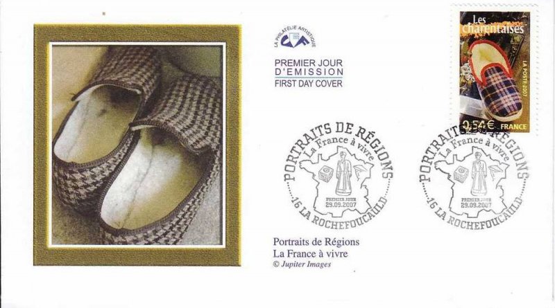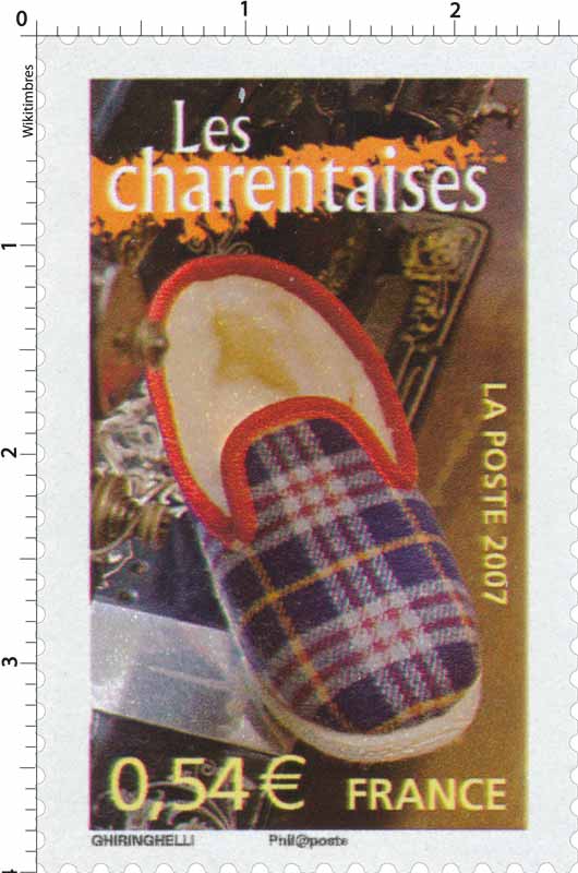 | Description | Les charentaises, pantoufles de feutre originaires de la région de la Charente |