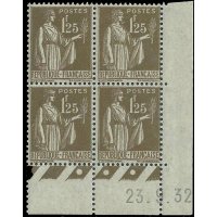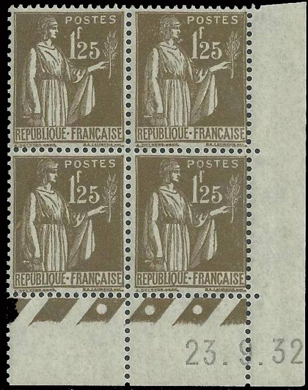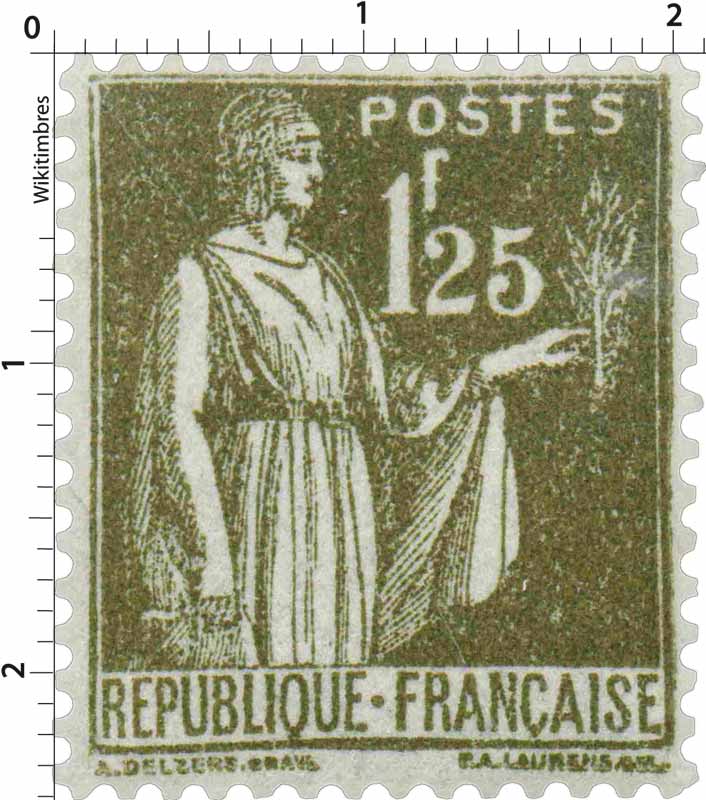| Commentaire | Émis en octobre 1932, le 1 f 25 olive appartient aux valeurs élevées de la série Paix. Il fut principalement utilisé pour les affranchissements recommandés, colis postaux légers et correspondances internationales. Sa période de vente, très courte — un peu plus d’un an, jusqu’en décembre 1933 — explique sa cote nettement supérieure aux autres valeurs de la série. Particularités philatéliquesLe tirage restreint et la courte durée de commercialisation font du 1 f 25 l’une des valeurs les plus recherchées de la série Paix. On observe plusieurs nuances d’olive, allant d’un olive brun soutenu à un olive plus froid, souvent liées aux variations d’encrage lors des premiers tirages typographiques. Sur documents, il devient particulièrement intéressant lorsqu’il apparaît en affranchissement isolé vers l’étranger (tarif 1re zone + surtaxes) ou en combinaison avec les 30 c, 40 c ou 1 f pour les recommandés. Les oblitérations nettes de 1932–1933 sont remarquées, car elles permettent d’authentifier les premiers tirages. |