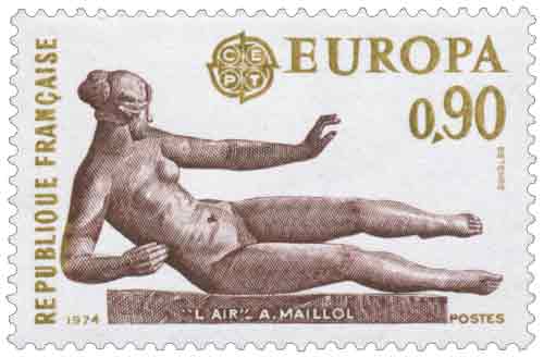 L’émission EUROPA de 1974 s’inscrit dans un tournant majeur de la philatélie européenne, lorsque la Conférence européenne des Postes et Télécommunications renonce au symbole unique au profit d’un thème commun, inauguré cette année-là par la sculpture. La France choisit d’illustrer cette nouvelle orientation à travers deux œuvres emblématiques de la modernité, dont L’Air d’Aristide Maillol, représentée sur ce timbre. Cette sculpture, installée dans le jardin des Tuileries à Paris, exprime une conception de l’art fondée sur l’équilibre, la plénitude des formes et la recherche d’une harmonie intemporelle. Le choix de Maillol répond à celui de Rodin dans la même série, établissant un dialogue volontaire entre deux approches souvent opposées de la sculpture moderne : d’un côté la tension expressive et le modelé vibrant, de l’autre la sérénité méditerranéenne et la simplification des volumes. En 1974, cette mise en regard reflète une lecture apaisée de l’histoire de l’art, désormais dégagée des controverses esthétiques du tournant des XIXe et XXe siècles. Le timbre participe ainsi à une politique commémorative qui valorise la culture et les réalisations artistiques françaises dans un cadre européen partagé, tout en affirmant le rôle du timbre comme vecteur de diffusion du patrimoine. La représentation gravée de L’Air transpose avec fidélité la douceur des lignes et la stabilité des masses caractéristiques de l’œuvre, démontrant l’aptitude de la taille-douce à restituer, dans un format réduit, l’essence d’une sculpture monumentale. Cette émission témoigne enfin de l’attention portée, au début des années 1970, à l’inscription de la philatélie française dans une dynamique européenne, où le timbre devient à la fois marque d’affranchissement, objet culturel et support d’un discours commun sur l’art et l’identité partagée. |