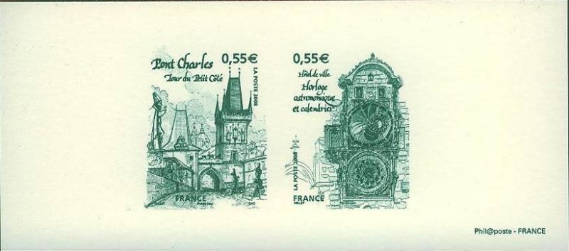 | Commentaire | La manifestation premier jour a lieu du 7 au 9 novembre au Salon philatélique d'automne, à Paris. Le cachet premier jour est un crayonné du pont Charles par Cécile Millet |