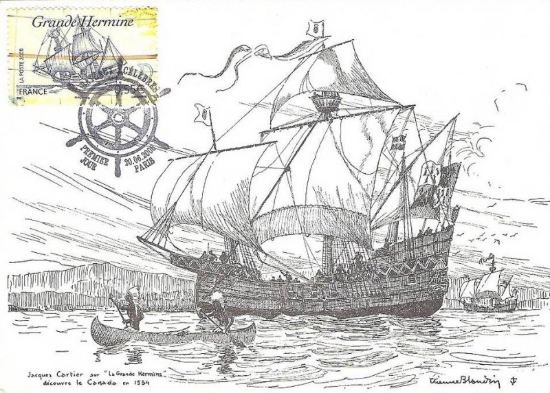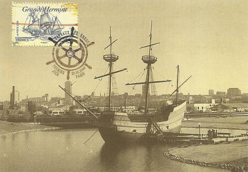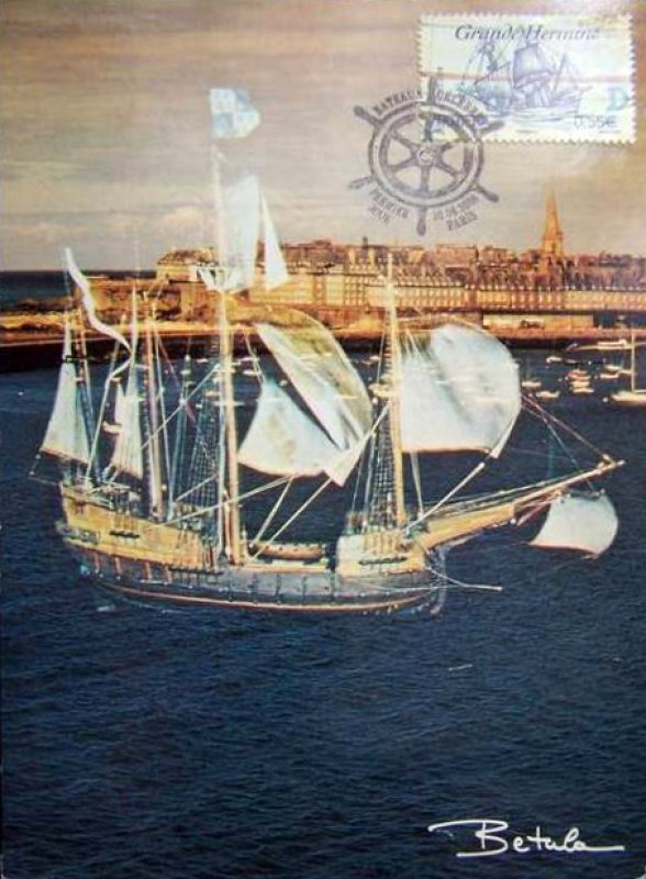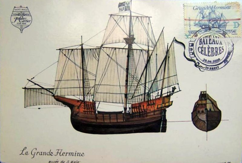 | Description | Voiliers célèbres: La Grande Hermine en 1535, de Jacques Cartier (1491-1557), navigateur et explorateur, né à Saint-Malo (Ille-et-Vilaine) |
