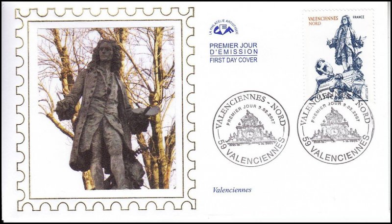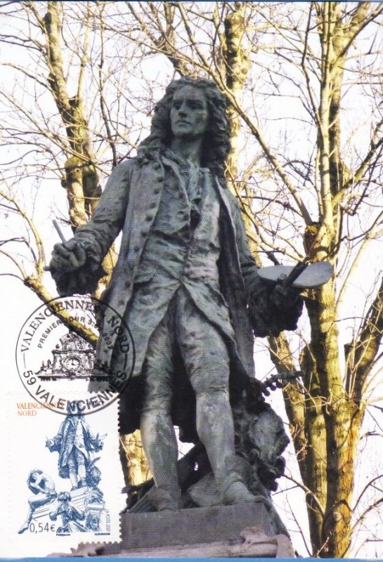 | Description | Valenciennes (Nord). Représentation de la statue d’Antoine Watteau (né dans cette ville, rue de Paris prolongée), par Jean-Baptiste Carpeaux, natif également de Valenciennes |