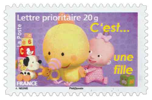 | Description | Timbres de naissances. C'est une fille timbre à gratter |