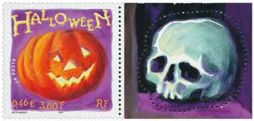| Description | Halloween. A l'occasion de la fête d'Halloween, représentation d'une citrouille. (timbre phosphorescent) |