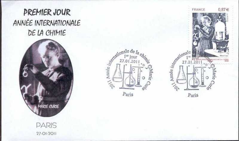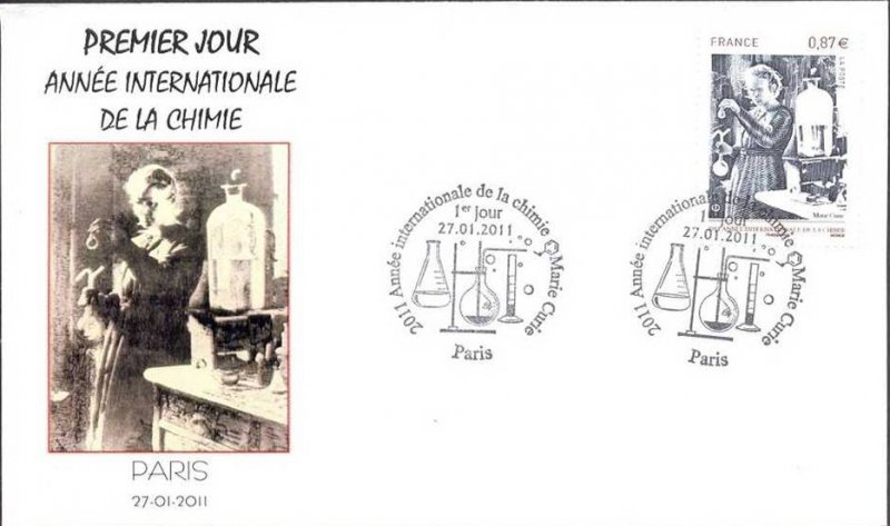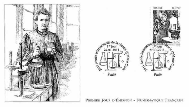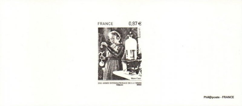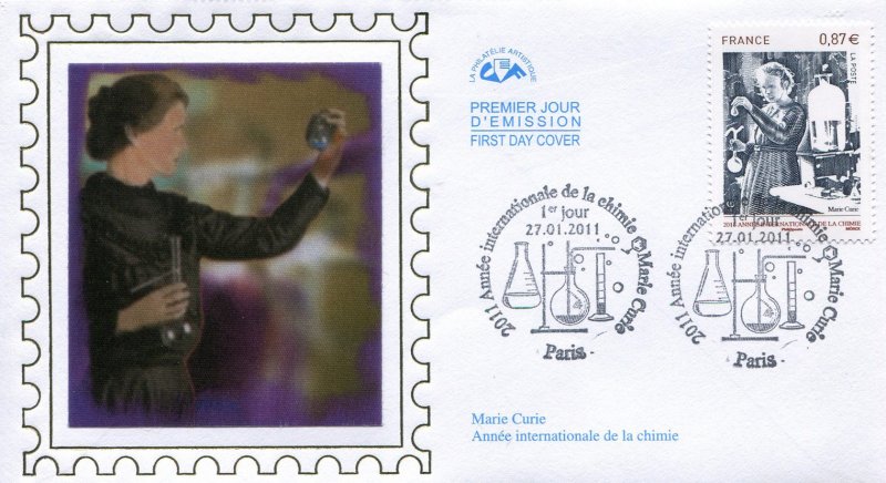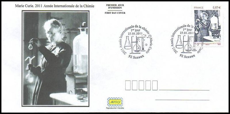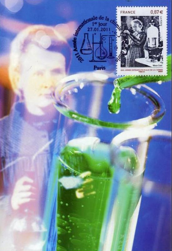 | Commentaire | Existe également en autoadhésif. Après l’Année Mondiale de la Physique en 2005 et de l’Astronomie en 2009, les Nations Unies ont proclamé 2011 Année Internationale de la Chimie. “La chimie est essentielle à notre compréhension du monde et du cosmos. De plus, les transformations moléculaires sont au cœur de la production de nourriture, de médicaments, de carburant, et d’innombrables produits manufacturés et d’extraction. Tout au long de l’année internationale de la chimie, le monde entier célèbrera cette science et ses apports essentiels à la connaissance, à la protection de l’environnement et au développement économique”. L’AIC 2011 insistera sur la contribution actuelle des femmes à la science en général et à la chimie en particulier puis sur la place qui revient à la chimie dans notre société d’aujourd’hui à travers le 100e anniversaire de l’attribution du prix Nobel de chimie à Marie Sklodowska-Curie.