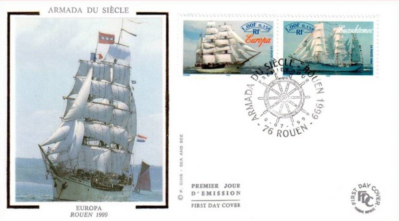 | Commentaire | Description synthétique du visuel du timbre : Cette feuille de 10 timbres-poste est émise à l’occasion de “ L’Armada du siècle ”, rassemblement international de voiliers anciens. Cette importante manifestation se déroulera à Rouen, au mois de juillet 1999, et regroupera les plus célèbres voiliers du monde. Parmi les 26 bateaux officiellement présents à ce jour, 10 d’entre eux font l’objet d’un timbre : Simón Bolívar (Venezuela), Iskra (Pologne), Statsraad Lehmkuhl (Norvège), Asgard II (Irlande), Belle Poule (France), Belem (France), Amerigo Vespucci (Italie), Sagres (Portugal), Europa (Hollande), Cuauhtemoc (Mexique). Cette feuille inaugure une nouvelle collection : la Collection Jeunesse. Cette collection est destinée aux jeunes de 8 à 12 ans, philatélistes ou non, et fera l’objet d’une émission par an. A cette occasion, un logotype a été créé et associé à la Collection Jeunesse : il intègre le nom de la collection et la lettre J, autour de laquelle 5 timbres aux couleurs vives évoluent. |