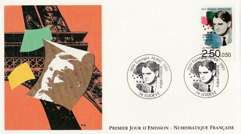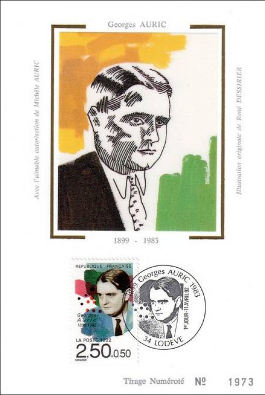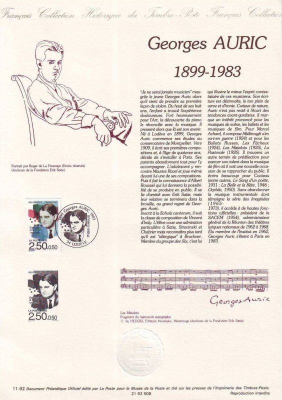 | Description | Georges Auric (1899-1983), compositeur, né à Lodève (Hérault) (provenant d'une feuille de 50 TP) |