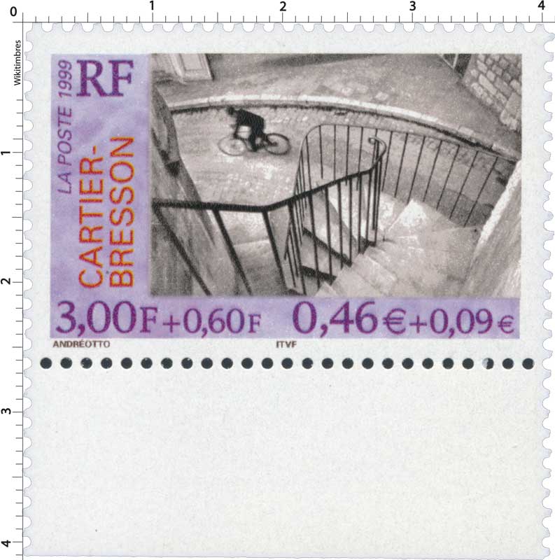 - Henri Cartier-Bresson (1908-2004), photographe, né à Chanteloup-en-Brie (Seine-et-Marne), provenant d'une feuille de 50 TP