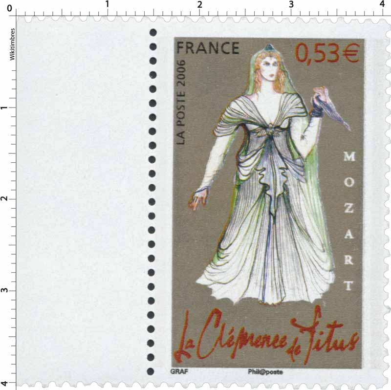 | Description | Les opéras de Mozart : La Clémence de Titus (timbre provenant d'une feuille de 50 TP) |