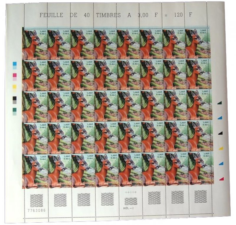 | Description | Le chevreuil (timbre provenant d'une feuille de 40 TP) |