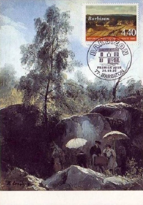 | Description | Barbizon, les Chaumières de Barbizon, œuvre de Narcisse Díaz de la Peña (1807-1876), artiste-peintre, né à Bordeaux |
