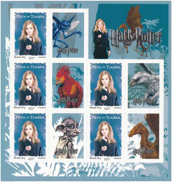 Mini-feuille de timbres "Harry Potter" À l'occasion de la Fête du Timbre et de l'Ecrit, La Poste émet trois mini-feuilles de timbres avec vignettes attenantes :