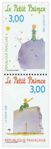 | Commentaire | Émis en bloc feuillet de 5 TP et en bande de 5 timbres et 2 vignettes. Description synthétique du visuel : La bande reprend quelques thèmes de l’œuvre d’Antoine de Saint Exupéry : le petit prince en habit, le renard, l’astéroïde B612, le serpent et la fleur. |