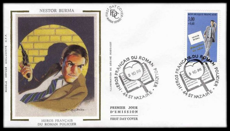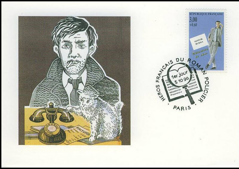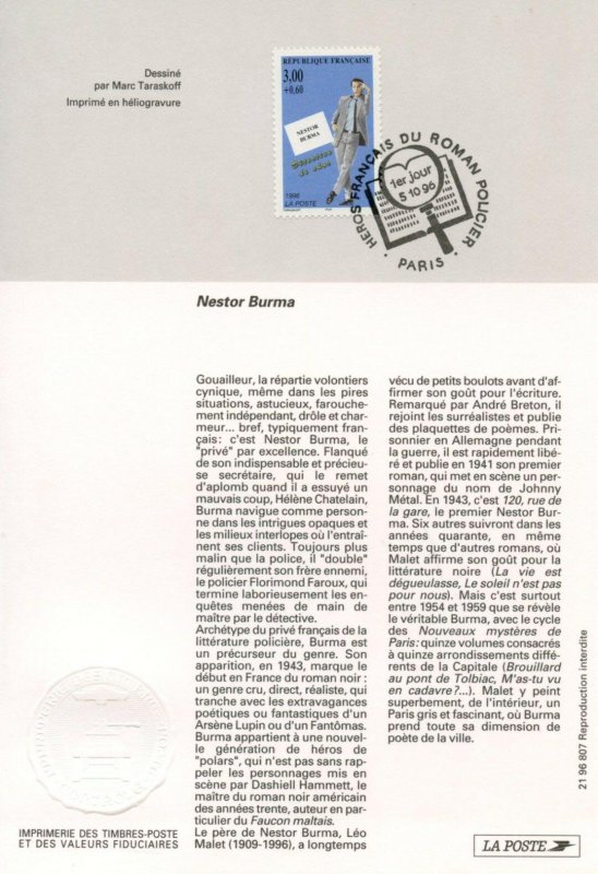 | Description | Nestor Burma, détective privé créé par Léo Malet (1909-1996), écrivain, né à Montpellier, timbre provenant d’une feuille de 50 |