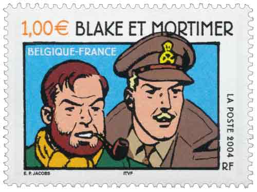 | Commentaire | Edgar Pierre Jacobs est né à Bruxelles le 30 mars 1904. Artiste lyrique de 1917 à 1940, il poursuit en parallèle une carrière d’illustrateur. En 1942, il est chargé de continuer « Flash Gordon » dans l’hebdomadaire « Bravo » puis crée « Rayon U », une transposition du célèbre héros. Hergé remarque ses dons de coloriste en 1943 et lui confie le remaniement de sept albums de « Tintin ». Il crée alors en 1946 dans le journal « Tintin » belge, la célèbre série des aventures de « Blake et Mortimer ». Les portraits des 2 héros illustrent ce second timbre. Émission commune avec la Belgique. |