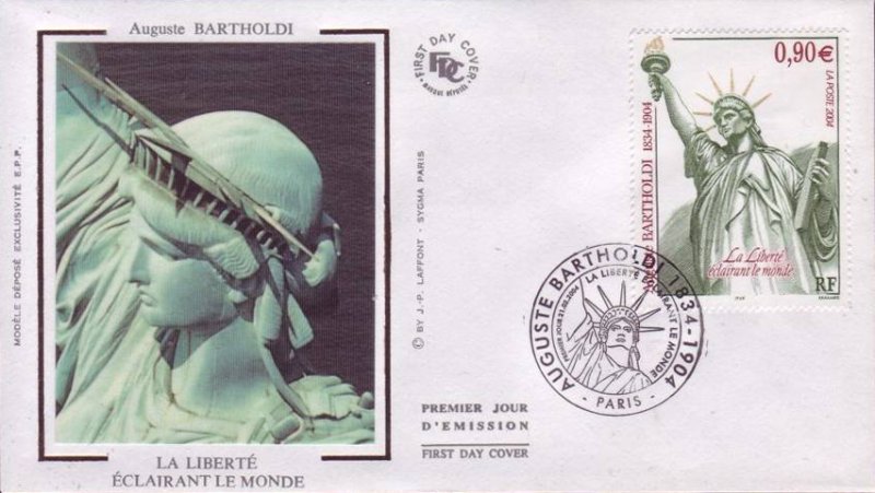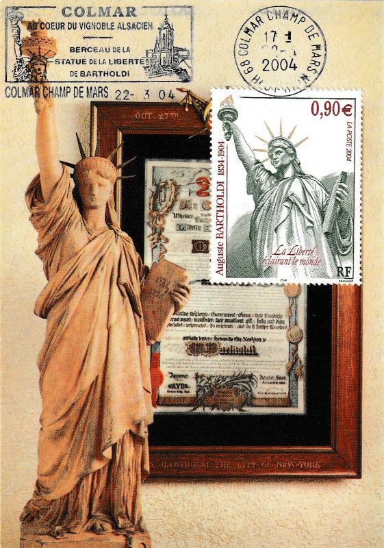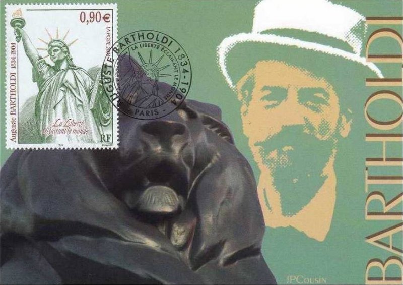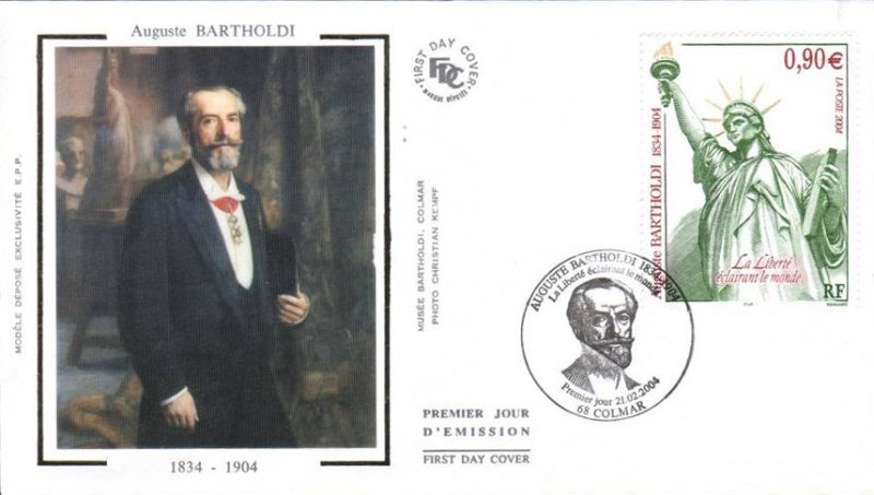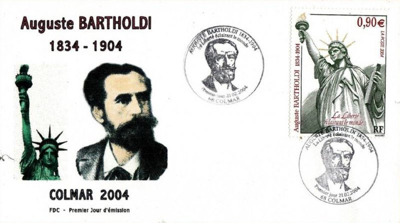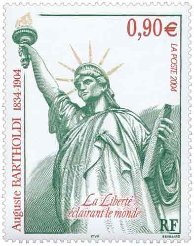 | Description | Centenaire de la mort du sculpteur Auguste Bartholdi (1834-1904), né à Colmar. Représentation de la statue qu'il a conçue, La Liberté éclairant le monde . Également l'auteur du monumental Lion de Belfort (Territoire de Belfort) |