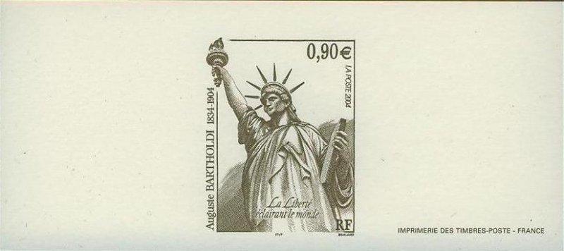 | Commentaire | Frédéric Auguste Bartholdi est né à Colmar le 02 août 1834. En 1853, il exécute pour sa ville natale, une de ses premières commandes, une statue du Général Rapp. Un voyage au Moyen-Orient, en 1855 - 1856, d’où il rapportera croquis, dessins et photographies, enrichira son parcours artistique et technique. Suivront ensuite plusieurs statues : Vauban, le petit vigneron, Vercingétorix ….Après la guerre de 1870, il part aux Etats-Unis avec l’idée de « lutter pour la liberté » et imagine « la Liberté éclairant le monde ». En 1884, la Statue de la Liberté est remise officiellement aux Etats-Unis. Un an plus tard, la réplique réduite de la statue, qui illustre le timbre, est offerte à la France par l’Amérique et installée à la pointe de l’île aux cygnes, à Paris en 1889. Elle y fait face à celle de New-York. Les sept rayons de son diadème représentent les 7 continents (Europe, Amérique, Asie, Afrique, Australie, Pôle Nord et Pôle Sud), sa torche symbolise la lumière, la direction à suivre. |