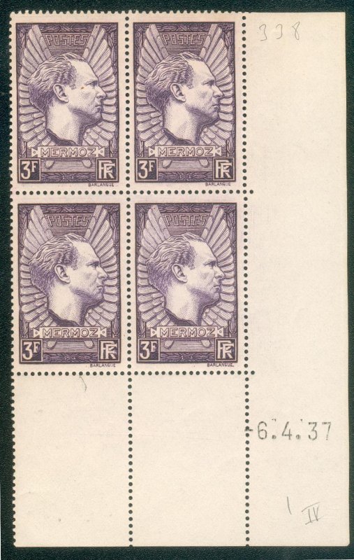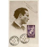 | Commentaire | En savoir plus sur Wikipédia: Jean Mermoz Émis le 22 avril 1937 en taille-douce rotative, ce timbre vertical lilas rend un hommage national rapide et poignant à Jean Mermoz (1901–1936), le légendaire aviateur de l'Aéropostale, disparu en mer le 7 décembre 1936. La France honore ainsi une figure héroïque, surnommée l'« Archange », qui symbolisait la bravoure, l'exploration et l'essor de l'aviation civile. Dessiné et gravé par Gabriel-Antoine Barlangue, le timbre représente, selon toute vraisemblance, le monument ailé élevé à la mémoire du pilote. Sa valeur faciale élevée de 3,00 Francs le destinait clairement à l'affranchissement du courrier aérien, notamment sur les lignes de la compagnie Air Bleu, soulignant le rôle crucial de Mermoz dans l'établissement des liaisons postales aériennes transatlantiques. Le tirage de 5,75 millions d’exemplaires atteste de la ferveur populaire suscitée par l'aviateur. Ce timbre commémoratif fut retiré de la vente en mai 1938. |