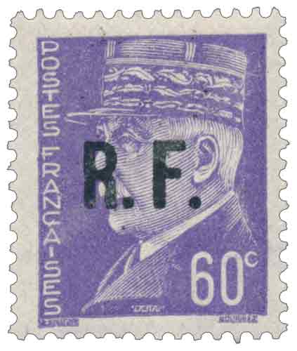 | Description | Maréchal Pétain - type Lemagny-Hourriez, surcharge R.F. (Poitiers type IV) |