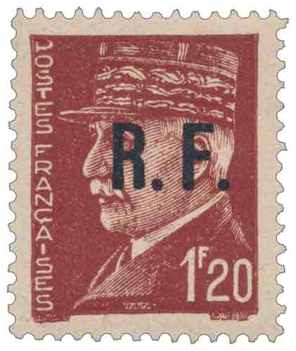 | Description | Maréchal Pétain - type Lemagny-Hourriez, surcharge R.F. (Poitiers type IV) |