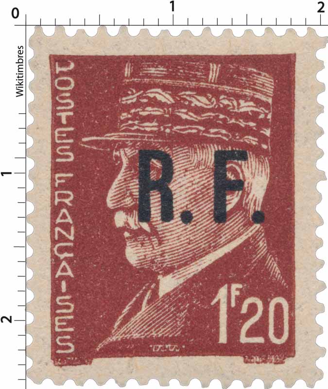 | Description | Maréchal Pétain - type Lemagny-Hourriez, surcharge R.F. (Poitiers type IV) |