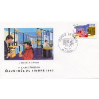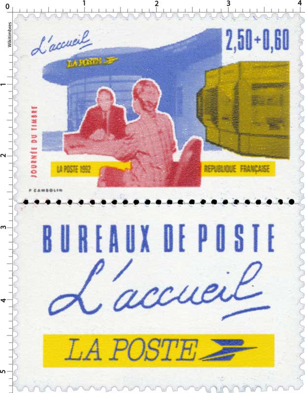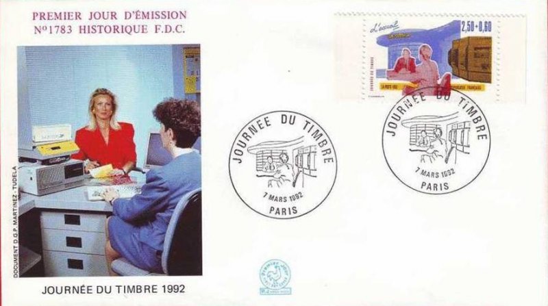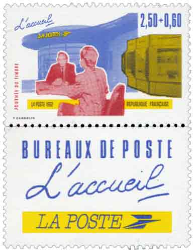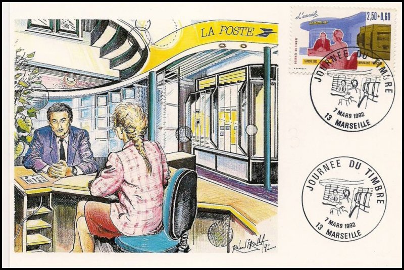 | Description | Journée du Timbre 1992. Les Métiers de la Poste, l'accueil |