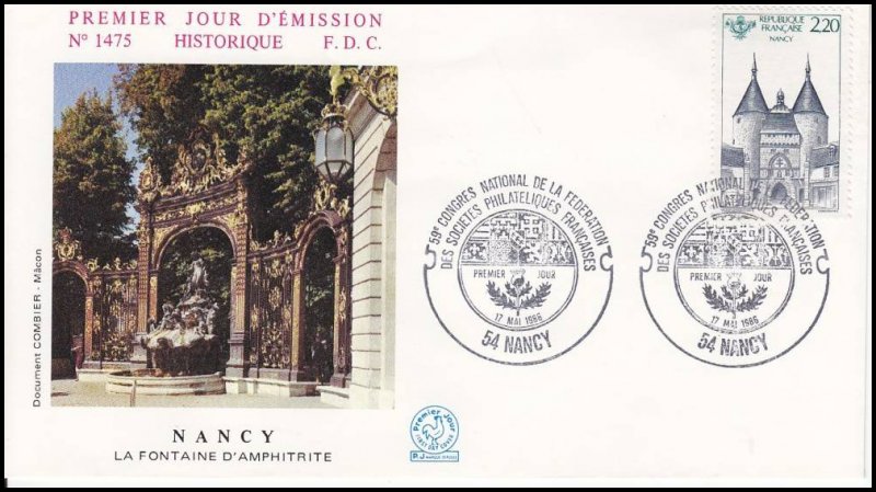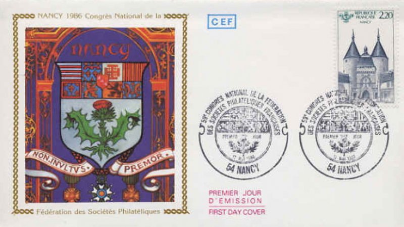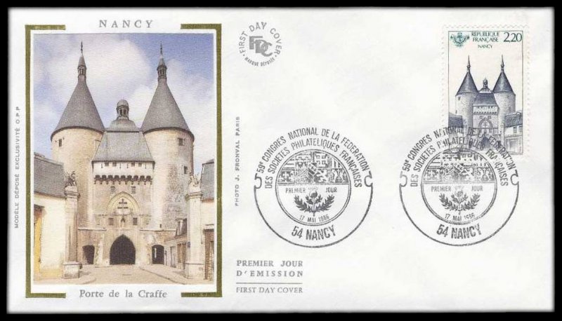 | Description | 59e congrès national de la Fédération des sociétés philatéliques françaises à Nancy et représentation de la porte de la Craffe |