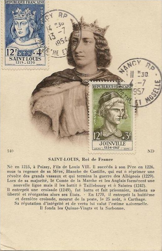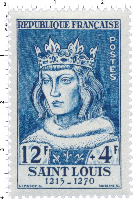 | Commentaire | Erreur dans la date de naissance : Louis IX est né le 25 avril 1214 Ce timbre est grevé d'une surtaxe au profit de la Croix-Rouge française |