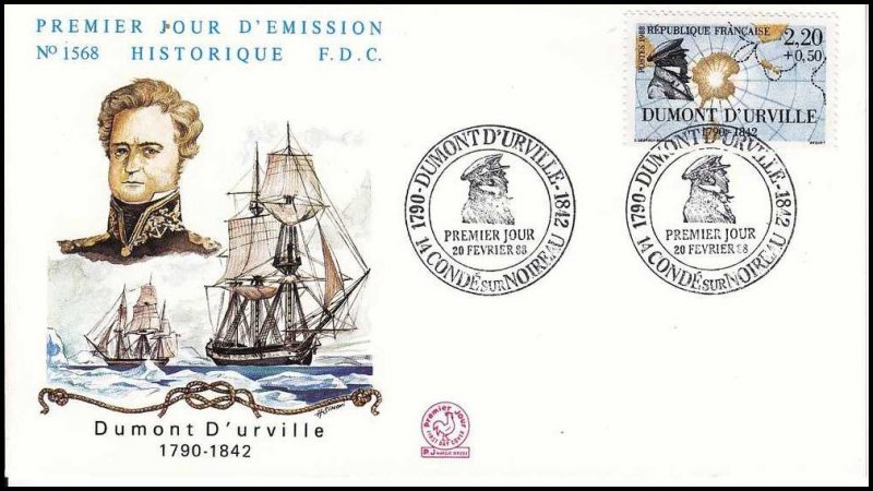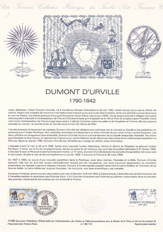 | Description | Jules Dumont d'Urville (1790-1842), explorateur, né à Condé-sur-Noireau (Calvados), provenant d'une feuille de 50TP |