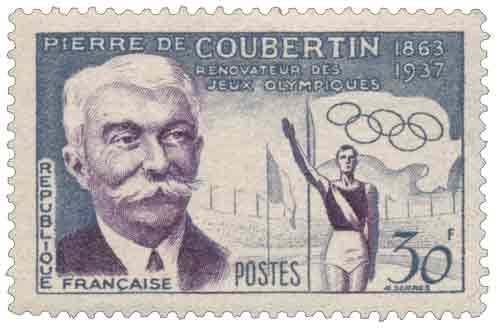 | Description | 60e anniversaire de la rénovation des Jeux olympiques. Baron Pierre de Coubertin (1863-1937), historien et pédagogue, né à Paris |