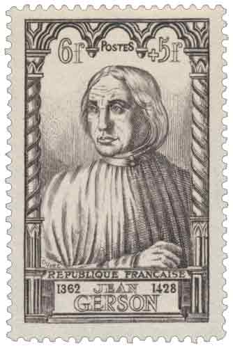 | Commentaire | Jean Charlier dit Jean de Gerson (1363-1429), erreur sur la date Émis en France en 1946 dans la série « Célébrités du XVe siècle », ce timbre gommé rend hommage à Jean Charlier dit Jean de Gerson, théologien et chancelier de l’Université de Paris, figure intellectuelle majeure à la charnière du XIVᵉ et du XVe siècle, dont l’action se situe au cœur du grand schisme d’Occident et des débats sur l’autorité de l’Église. Dessiné et gravé par Achille Ouvré, le timbre s’inscrit dans une émission à la fois culturelle et solidaire, puisqu’il porte une surtaxe au profit de l’Entraide française, dans l’esprit de la reconstruction sociale de l’après-guerre. Mis en vente générale le 28 octobre 1946, il est destiné à l’affranchissement de la carte postale pour l’étranger, usage fréquent qui justifie une diffusion en séries à plusieurs millions d’exemplaires. Le choix de Gerson rappelle son rôle d’acteur important du concile de Constance, où se cristallisent les efforts de résolution du schisme et les controverses doctrinales, et souligne l’importance de l’Université de Paris dans la vie politique et religieuse de son temps. Une information historiquement établie, et directement liée au timbre lui-même, est que l’émission comporte une erreur de millésimes dans la légende : les dates imprimées 1362–1428 sont inexactes, Jean de Gerson étant né en 1363 et mort en 1429, détail notable pour l’identification philatélique de cette vignette. |