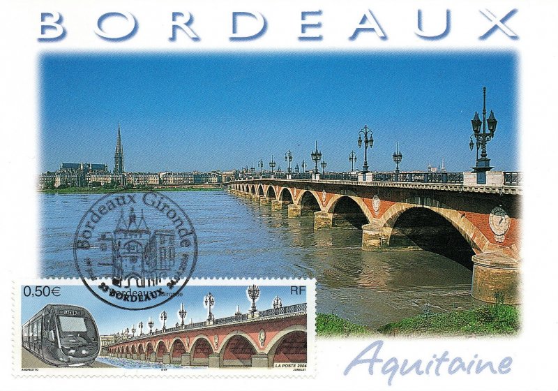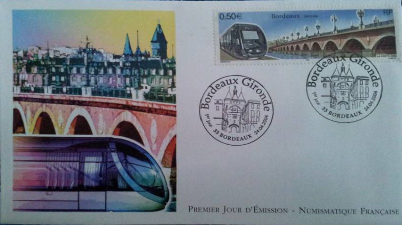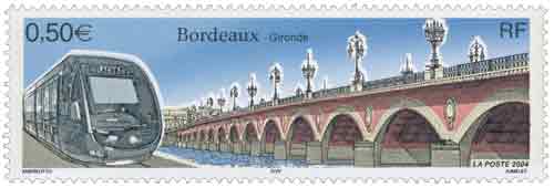 | Description | Bordeaux (Gironde), représentation du pont de pierre et d'une rame du tramway de Bordeaux (inauguré le 21 décembre 2003) |