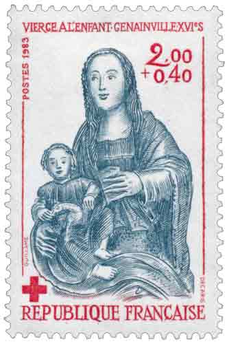 | Description | Au profit de la Croix-Rouge française. Vierge à l'enfant, début XVIe, église de Genainville (Val-d'Oise) |