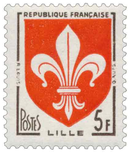 | Commentaire | Le timbre gommé émis en France en 1958 consacré aux armoiries de Lille appartient à la troisième série des Armoiries des villes de France, ensemble philatélique visant à illustrer l’identité héraldique des grandes communes françaises à travers un graphisme officiel et standardisé. Mis en vente à partir du 17 novembre 1958 après un premier jour organisé à Lille, ce timbre vertical de 5 francs est destiné à l’affranchissement des journaux, usage postal spécifique nécessitant une valeur faciale élevée et expliquant un tirage exceptionnellement important. Le dessin, confié à Robert Louis et gravé par Gilbert Aufschneider, reprend avec sobriété le blason lillois, composé d’une fleur de lys florencée d’argent sur champ de gueules, symbole ancien attestant des liens historiques de la ville avec le pouvoir royal et son statut de place stratégique en Flandre française. L’impression en typographie rotative, procédé industriel privilégié pour les émissions à diffusion massive à la fin des années 1950, permet une production à très grande échelle adaptée aux besoins postaux courants. Par sa place dans la série, ce timbre contribue à une représentation territoriale de la France par ses villes, tout en illustrant la permanence et la lisibilité des codes héraldiques dans la philatélie française d’après-guerre. |