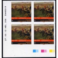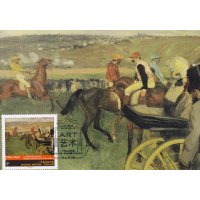 | Commentaire | Timbre à date “Premier Jour” conçu par Aurélie Baras Hilaire Germain Edgar de Gas, dit "Degas", naît à Paris en juillet 1834 " Le Champ de courses et Jockeys " Après de brèves études de droit, il étudie à l'Ecole des Beaux-arts où il acquiert une grande maîtrise du dessin. Peintre et sculpteur français, il est considéré comme l'un des représentants majeurs de l'impressionnisme. Sur les champs de courses, Degas exprime sa maîtrise dans la représentation des formes en mouvement, sans interrompre celui-ci, et dont il suggère le développement hors des limites de la toile. |