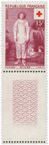 | Description | Surtaxe au profit de la Croix-Rouge française. « Gilles », œuvre de Jean Antoine Watteau (1684-1721), né à Valenciennes, provenant d'une feuille de 50 TP |