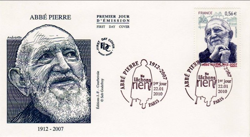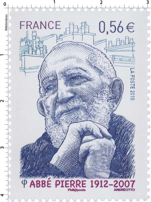 | Commentaire | Existe également en autoadhésif. Au début des années 50, bouleversé par l’effroyable misère de la France des bidonvilles, l’ancien résistant Henri Grouès, alias l’abbé Pierre, fait serment de donner un toit à tous les déshérités. |