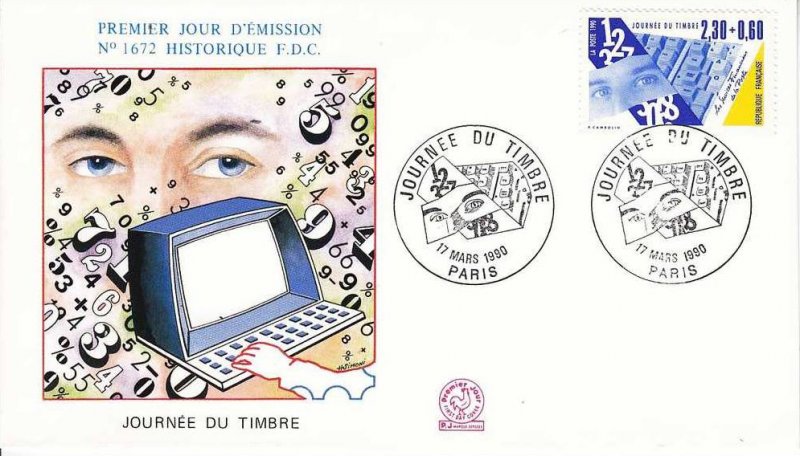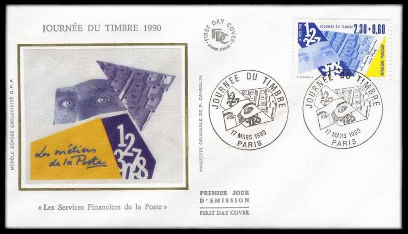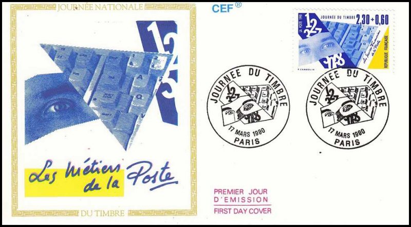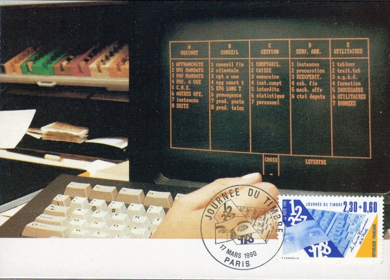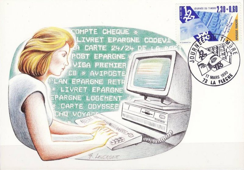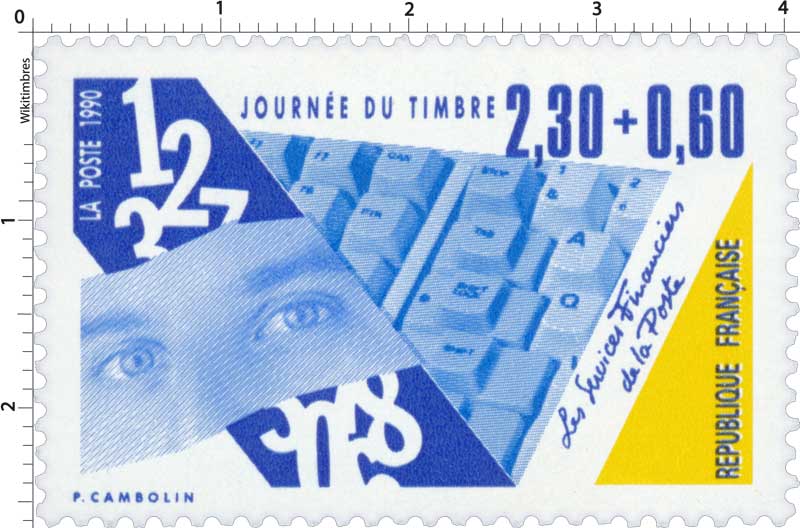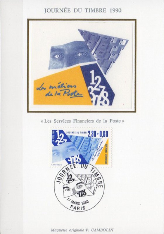 | Description | Journée du Timbre 1990. Les Métiers de la Poste : Les services financiers |