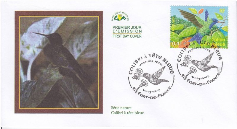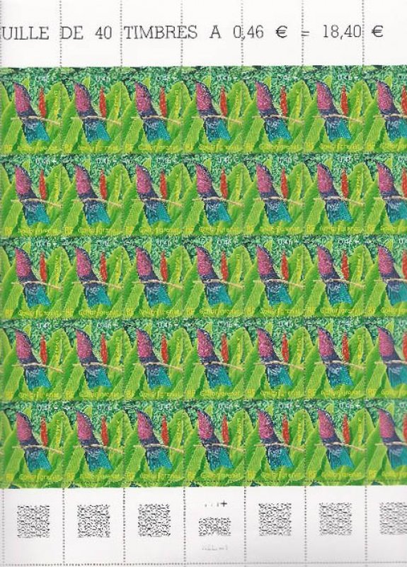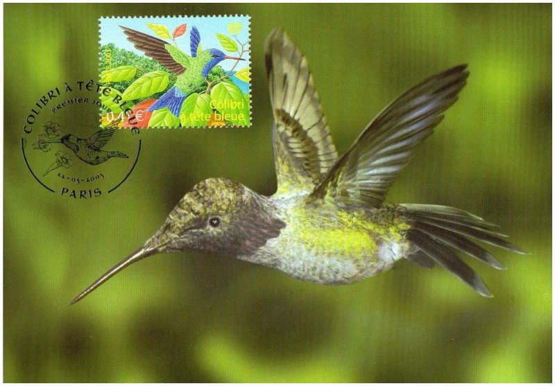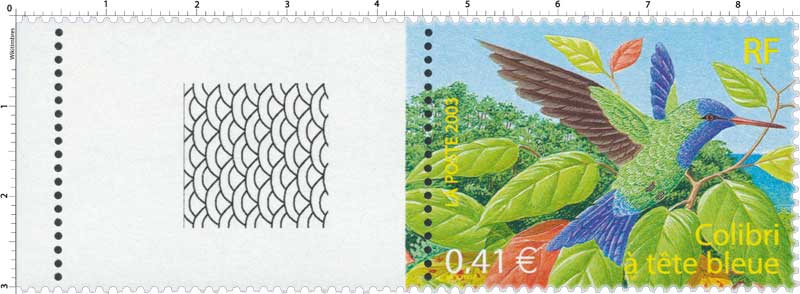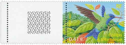 | Description | Colibri à tête bleue, espèce de la Martinique, provenant d'une feuille de 40 TP |
