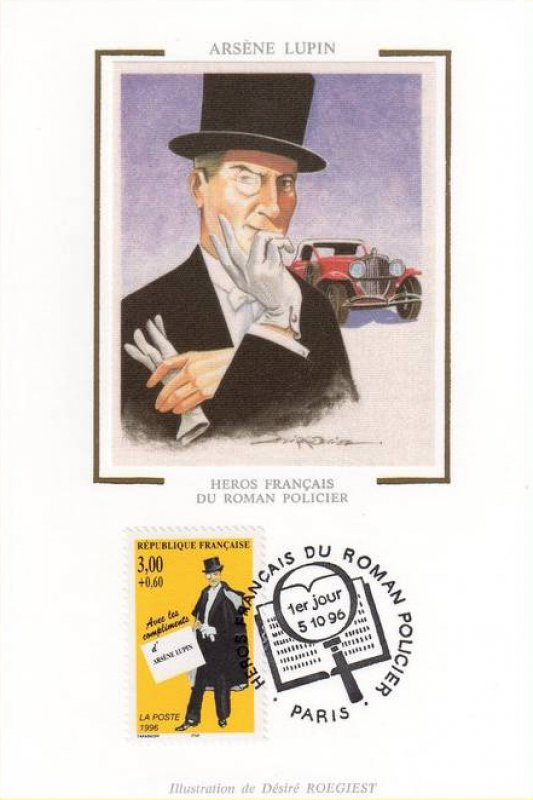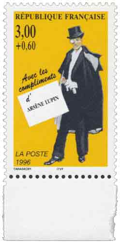 | Description | Arsène Lupin, personnage créé par Maurice Leblanc (1864-1941), écrivain, né à Rouen, timbre provenant d’une feuille de 50 |
