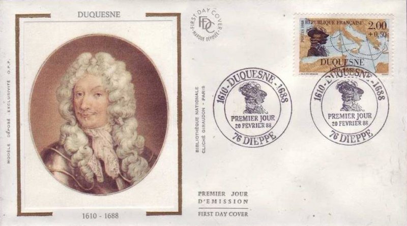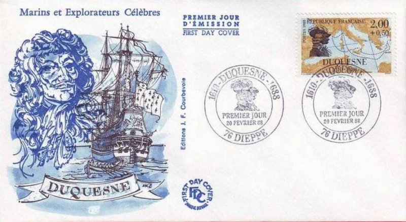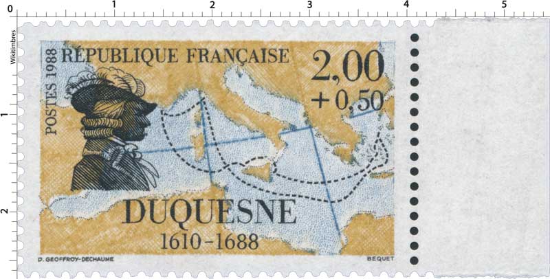 | Description | Abraham Duquesne (v1610-1688), officier de la marine, né à Dieppe, provenant d'une feuille de 50TP |