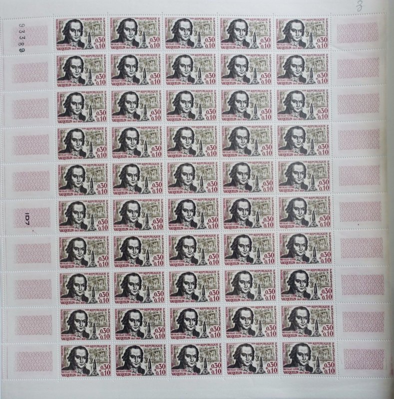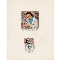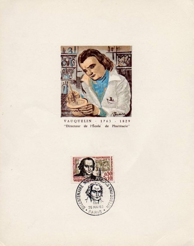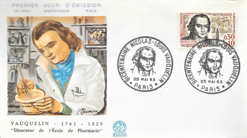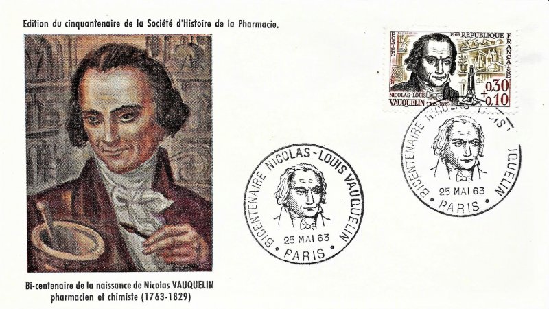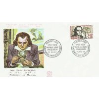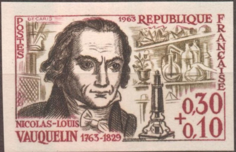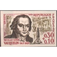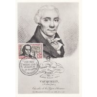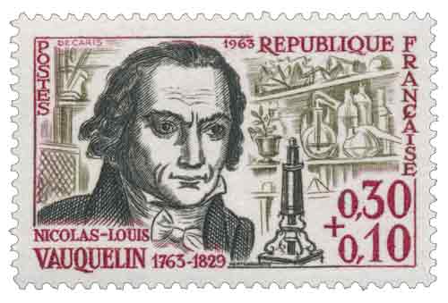 | Commentaire | Le timbre émis en 1963 à l’occasion du bicentenaire de la naissance de Nicolas-Louis Vauquelin rend hommage à l’un des grands noms de la chimie française. Le visuel, finement gravé par Claude Hertenberger d’après un dessin d’Albert Decaris, présente un portrait classique du savant : visage concentré, regard porté vers l’idée ou la réaction à venir, et en arrière-plan, une scène de laboratoire stylisée avec cornues, fioles et éclats d’alambic. Ce dialogue visuel entre le penseur et l’expérimentateur est particulièrement évocateur. Né en 1763 à Saint-André-d’Hébertot, dans le Calvados, Vauquelin se distingue par ses recherches fondamentales sur les métaux et les composés minéraux. Il isole plusieurs éléments, dont le chrome et le béryllium, et ses travaux influencent profondément l’évolution de la chimie analytique. Collaborateur de Fourcroy, membre de l’Académie des sciences, professeur au Collège de France, il incarne une époque où la science devient un vecteur de progrès pour la société. Ce timbre appartient à une série de 1963 consacrée à des figures françaises marquantes, choisies pour leur apport intellectuel ou culturel. Son émission marque un désir clair de réhabiliter, auprès du grand public, des savants parfois oubliés mais essentiels à l’histoire de la pensée scientifique. Le choix de Decaris pour le dessin n’est pas anodin : son trait expressif et dense donne de la chair au personnage sans sacrifier à la rigueur historique. Par son sujet, sa gravure sobre et son équilibre graphique, ce timbre est resté discret dans les albums, mais apprécié par les amateurs de science et de philatélie thématique. Il met à l’honneur une intelligence en action, dans la France des Lumières prolongées. ©WikiTimbres |