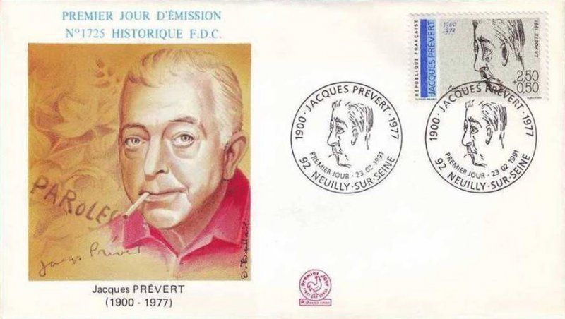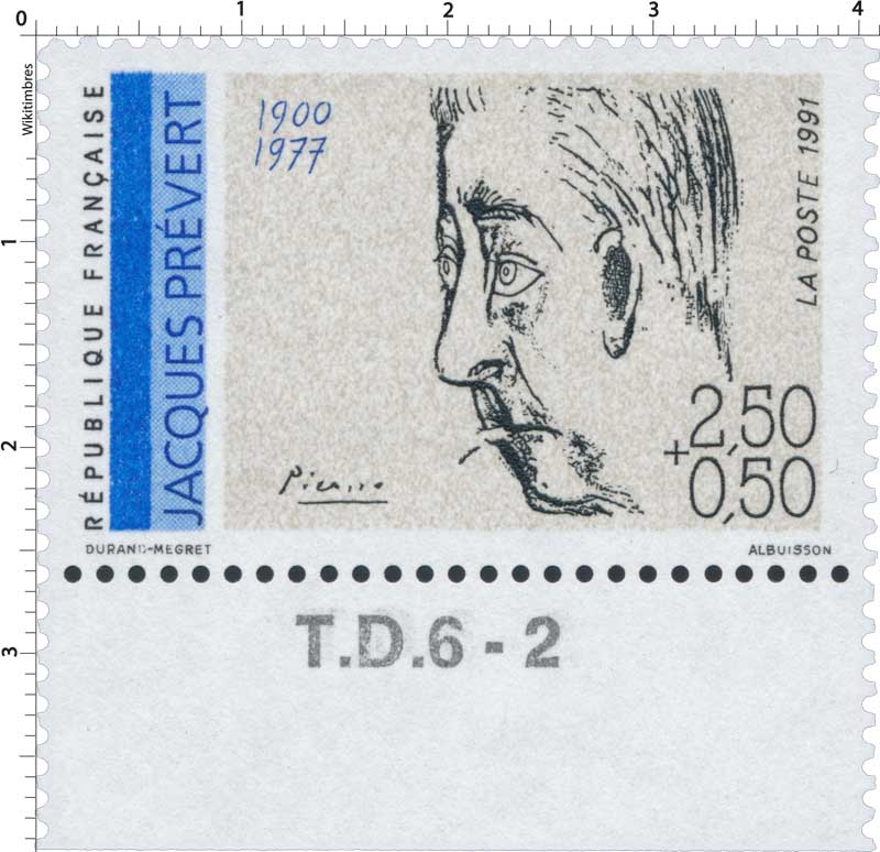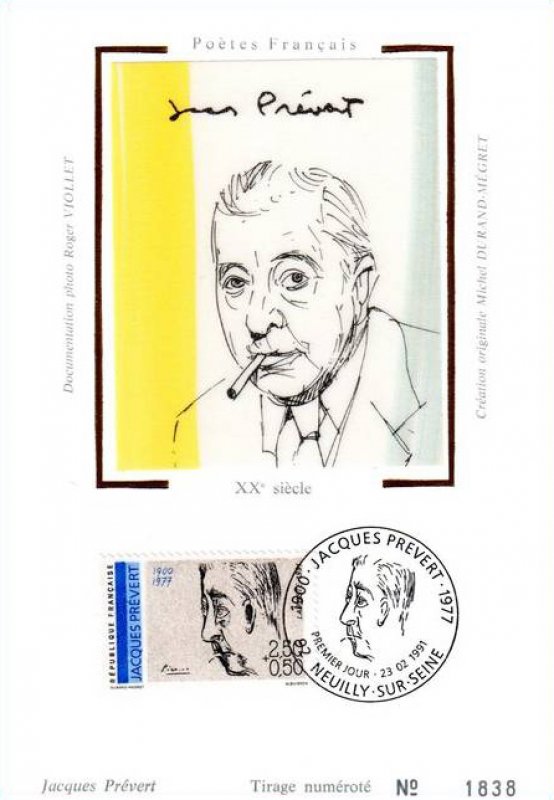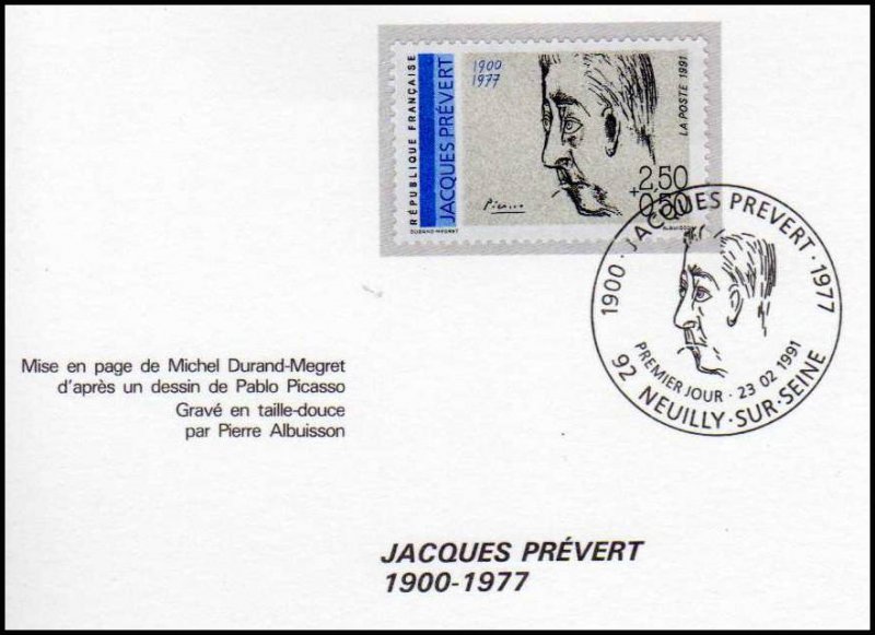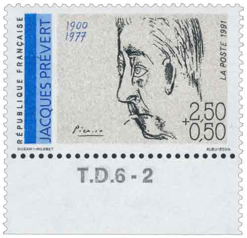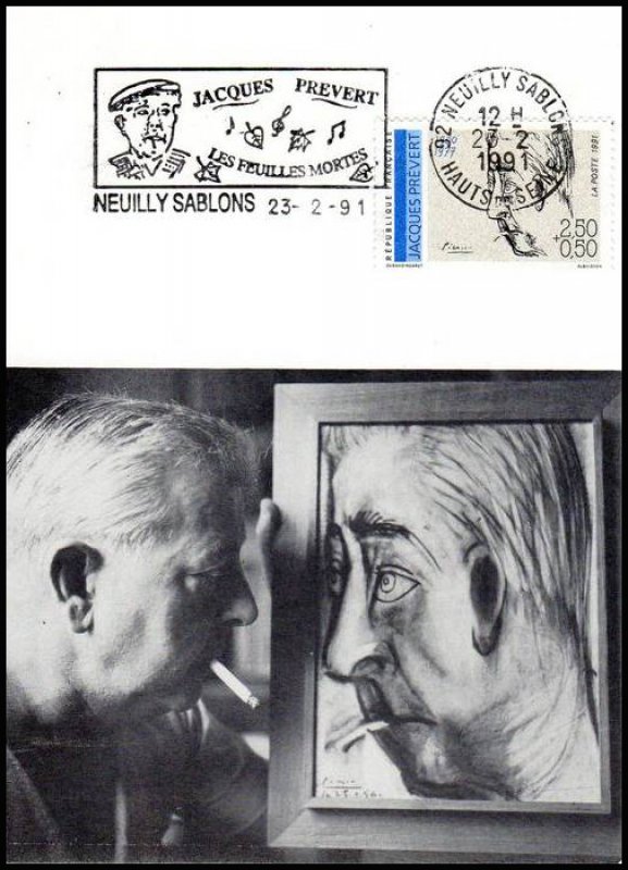 | Description | Jacques-Prévert (1900-1977), poète et scénariste, né à Neuilly-sur-Seine, portrait de Picasso - Maison et musée Jacques Prévert à Omonville-la-Petite (Manche), issu d'une feuille de 50 TP |