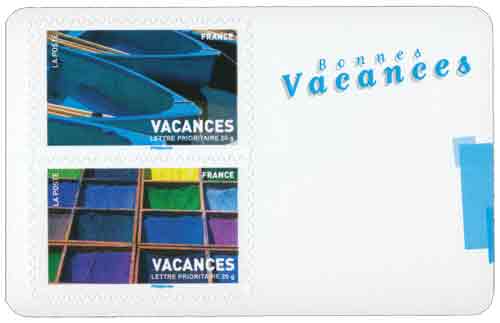 | Commentaire | Bonnes Vacances Destinations nuancées pour des vacances en bleu ! Timbre sans millésime |